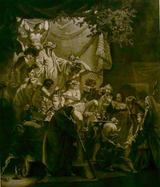 SIR FOPLING:Fill the glasses round, and draw up in a body. Hey! music! [all singing]