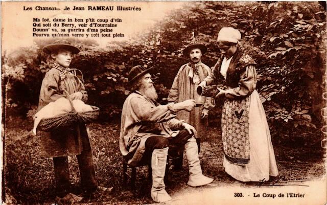 Le chansonnier berrichon Jean Rameau (1852-1931) a écrit plus de 300 chansons et s’est fait connaitre en en faisant de cartes postales. Ici, le coup de l’étrier.