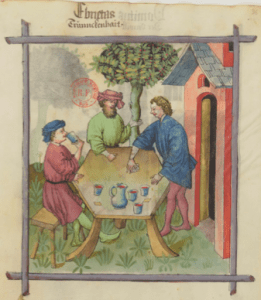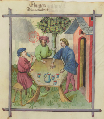 Voyons enfin l’ivresse, qui soulage les douleurs chroniques et soigne les humeurs corrompues, mais émousse le cerveau (y remédier avec des fortifiants du cerveau et en vomissant) ; très conseillée aux vieillards par temps froids et dans le Nord…