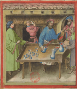 celui qui a du vin rouge dans sa coupe la donnera à son voisin de droite et