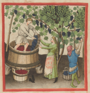 Les vins vieux, odorifères sont conseillés aux estomacs froids ; ils soignent les yeux et vivifient l’esprit ; en revanche, ils dégradent les sens et la mémoire des enfants que l’on guérira avec des pommes sûres et des coeurs de laitue ; ils affinnt le sang ; à conseiller aux personnes âgées, en hiver et dans les régions froides