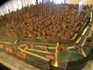 Nous voici à Bologne, capitale de l’Emilie-Romagne, entre Pô et Apennins. Une très belle ville, ancienne, et vivante. Son université, fondée en 1088, serait la plus vieille du monde occidental. Cette maquette montre à quoi ressemblait la ville à l’heure de sa plus grande gloire.
