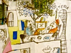Ce dessin représentant un cep portant une grappe géante été vu au ristorante Tiratappi da Orazio,